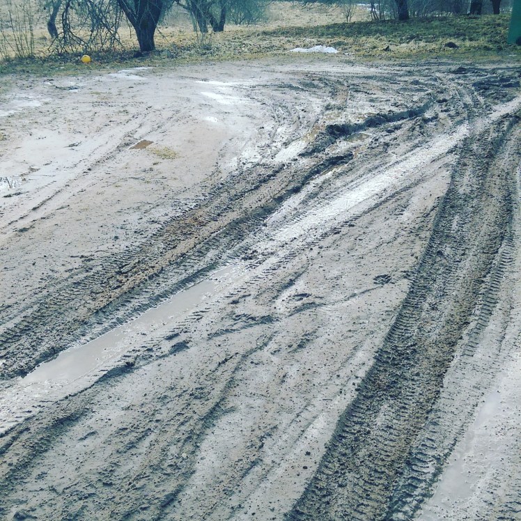 HaHa! I hope not! We would like to take our travel trailer out of the barn and start our “preparation for journey”! And it it’s that muddy we can’t do that! We need sun!