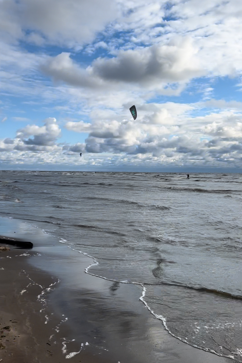 Before leaving Salacgriva for good, we couldn’t resist one final dip in the sea. The beach was nearly deserted, except for a few dedicated kiters who were braving the terrible, cold wind. Despite the chill in the air, the water was still so inviting. Two of the girls decided to go in, and they enjoyed every moment of it. The kiters, dressed like it was spring, couldn’t help but smile and show big thumbs up when they saw the girls diving into the waves.