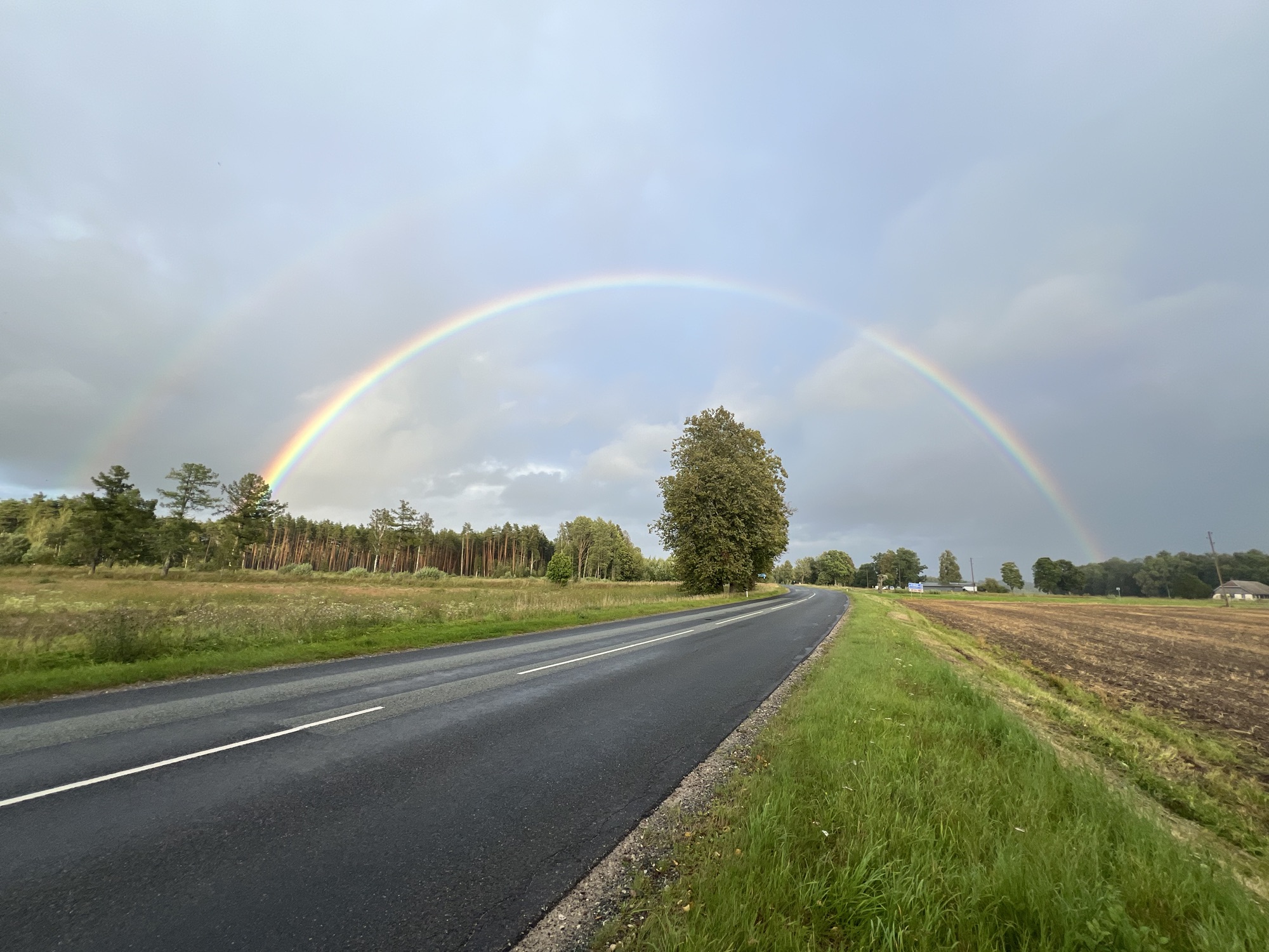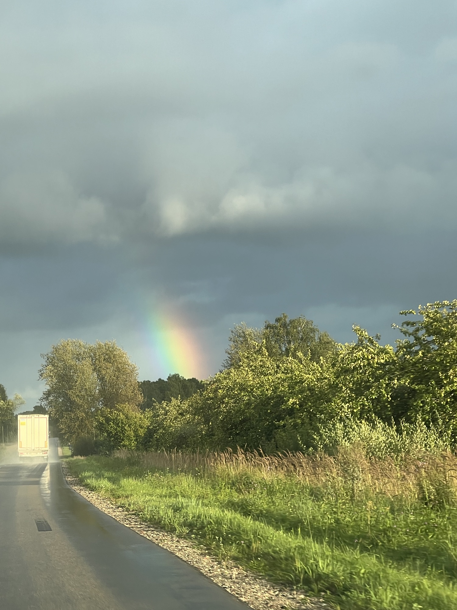 Once everything was done, we started our journey back home, feeling a bit tired but relieved. As we drove, something incredible happened – a beautiful rainbow appeared in front of us, stretching across the sky for more than a fifth of the road. It was almost two full rainbows, and while we tried to capture it, the pictures just don’t do it justice. It was one of those moments where nature reminds you of its beauty, offering a bit of comfort after a long day.