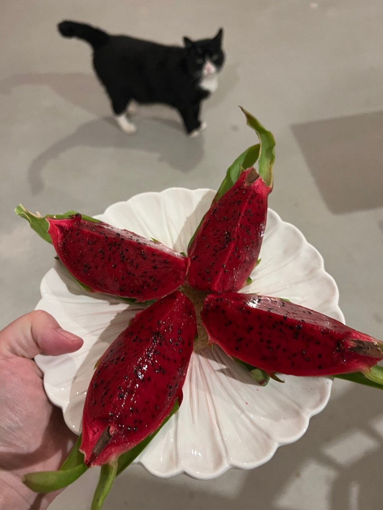 We finally tried dragon fruit—the exotic fruit with stunning pink skin and green-tipped spikes. It looked so inviting, so we couldn’t wait to dive in!