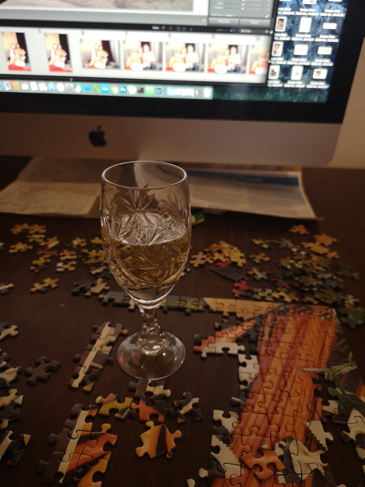 What a fun puzzle, very colorful! And what a nice way to spend a rainy day, relaxing with a puzzle and a glass of wine 🙂