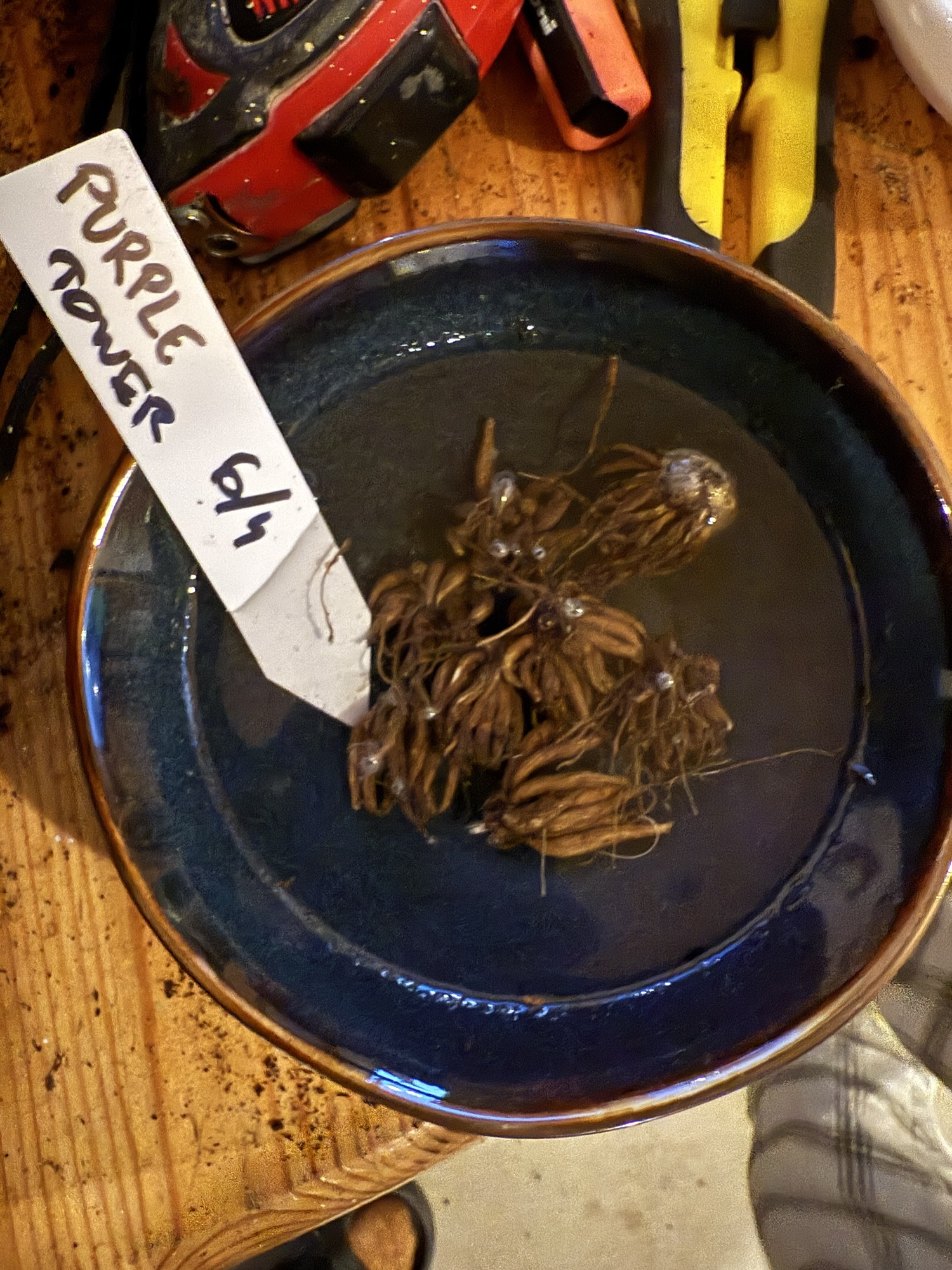We dug into my seed collection together, searching for something we could sow. Surprisingly, we couldn’t find any flower seeds that Linna would like. She loves purple. That’s when it hit me—I completely forgot about my Persian buttercups! I had planned to plant them at the end of March, but somehow they slipped my mind. And there are a few purple ones!