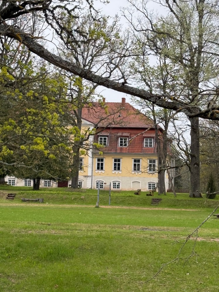 After finally eating, we decided to take a short drive — to the exact place where our food had been delivered: Beļavas muiža (Beļava Manor). Our own home also has “muiža” (manor) in its name, which would loosely translate to Chestnutmanor, so maybe that confused the system. Still, it gave us a reason to go on a small adventure.