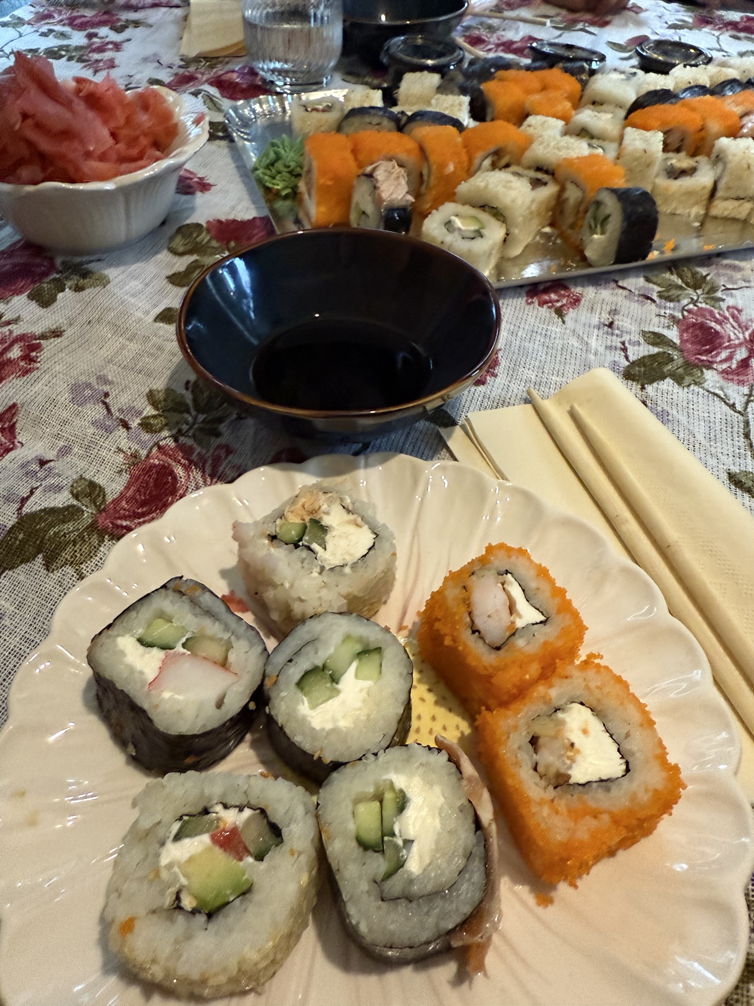 What the kids didn’t know was that, when we ordered our meal earlier, we also snuck in a sushi order. So we ended our unexpected day with a sushi celebration.