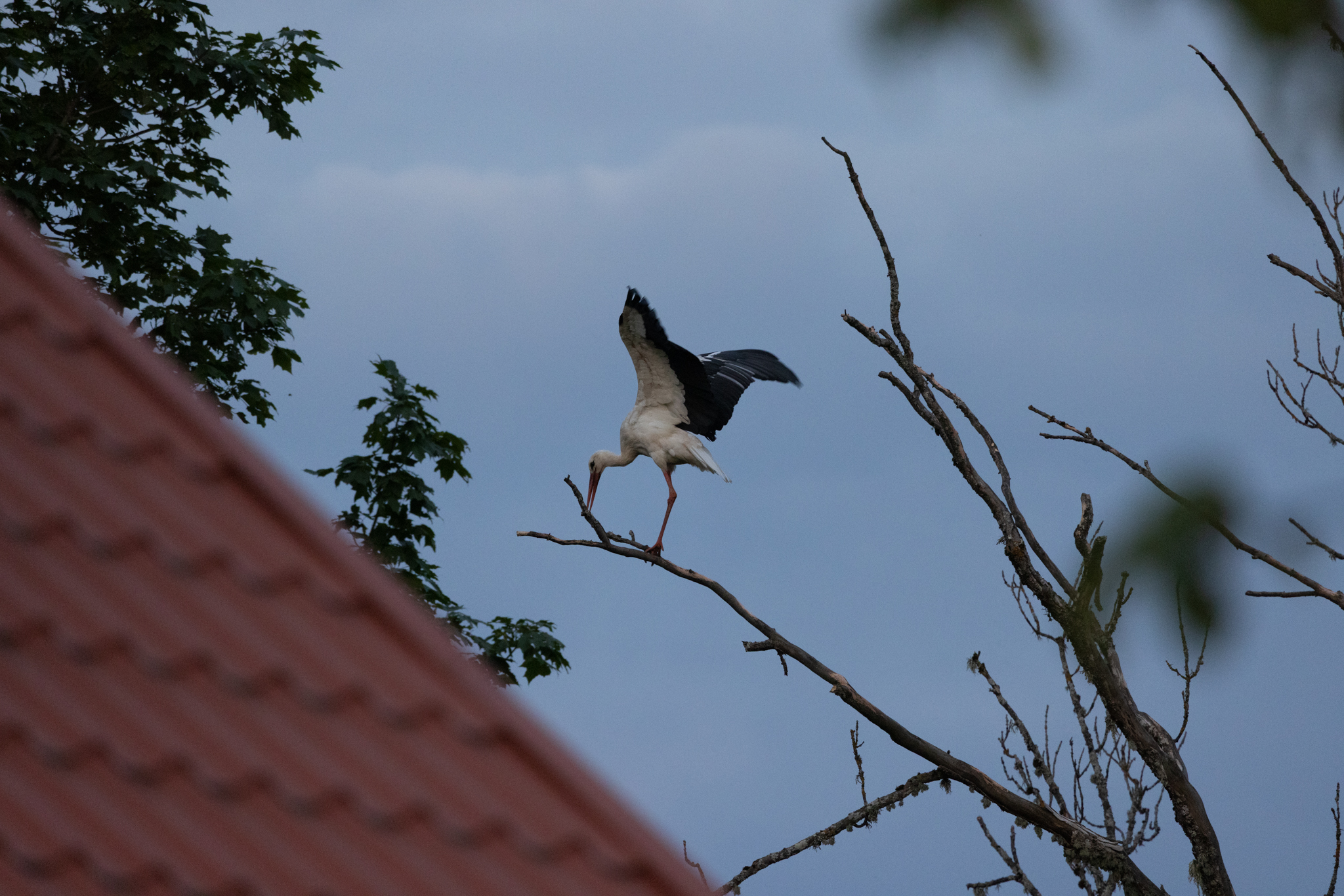 Next to our home stands an old, dead tree — weathered and bare, yet proud, like a silent guardian watching over us. Sometimes, this tree becomes an unexpected resting spot for storks, and last night was one of those magical evenings.