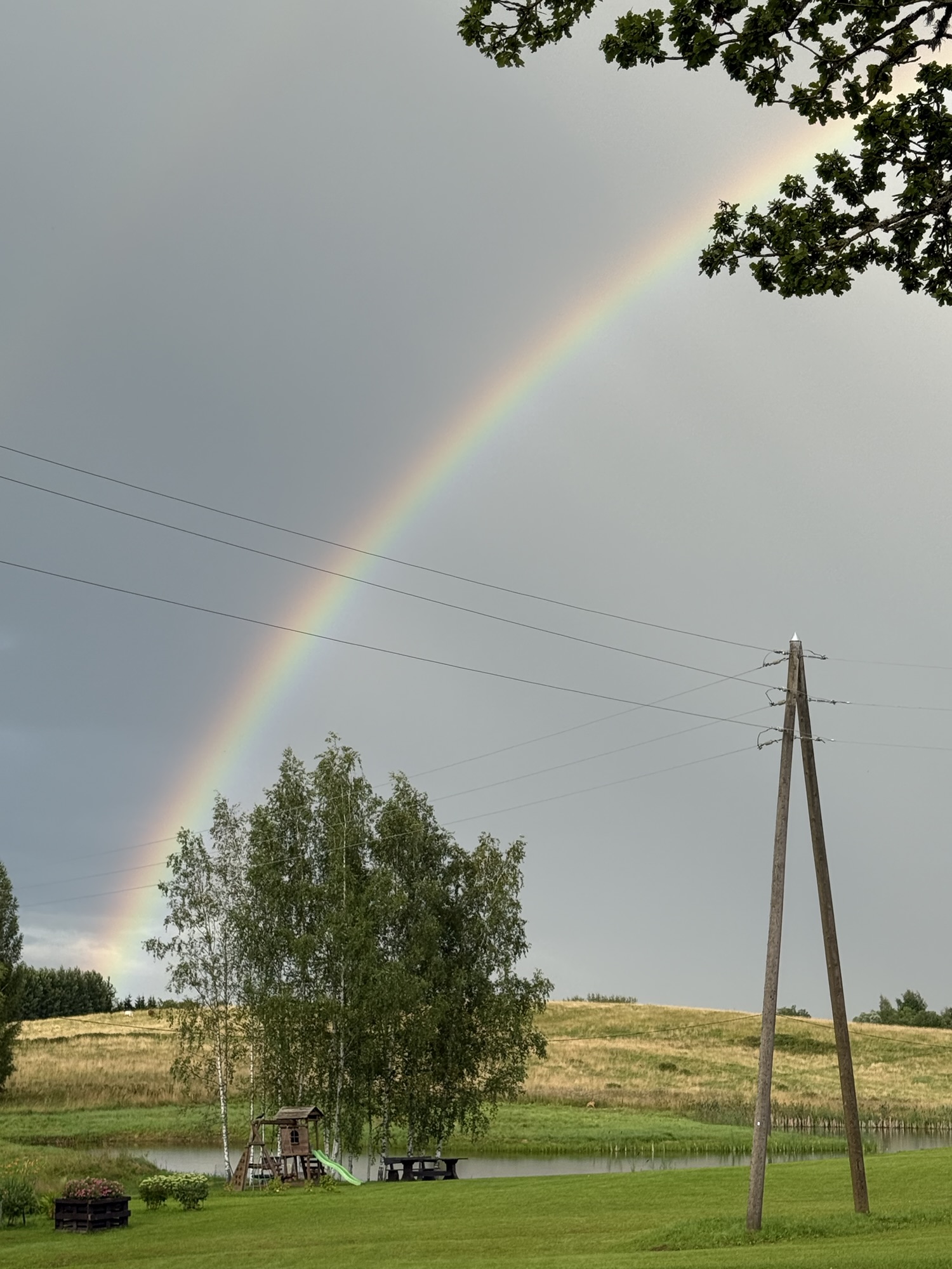 I love seeing rainbows! This summer, it’s only the third one so far. It’s been raining almost nonstop—but without enough sun to make many rainbows. That’s why today felt extra special.