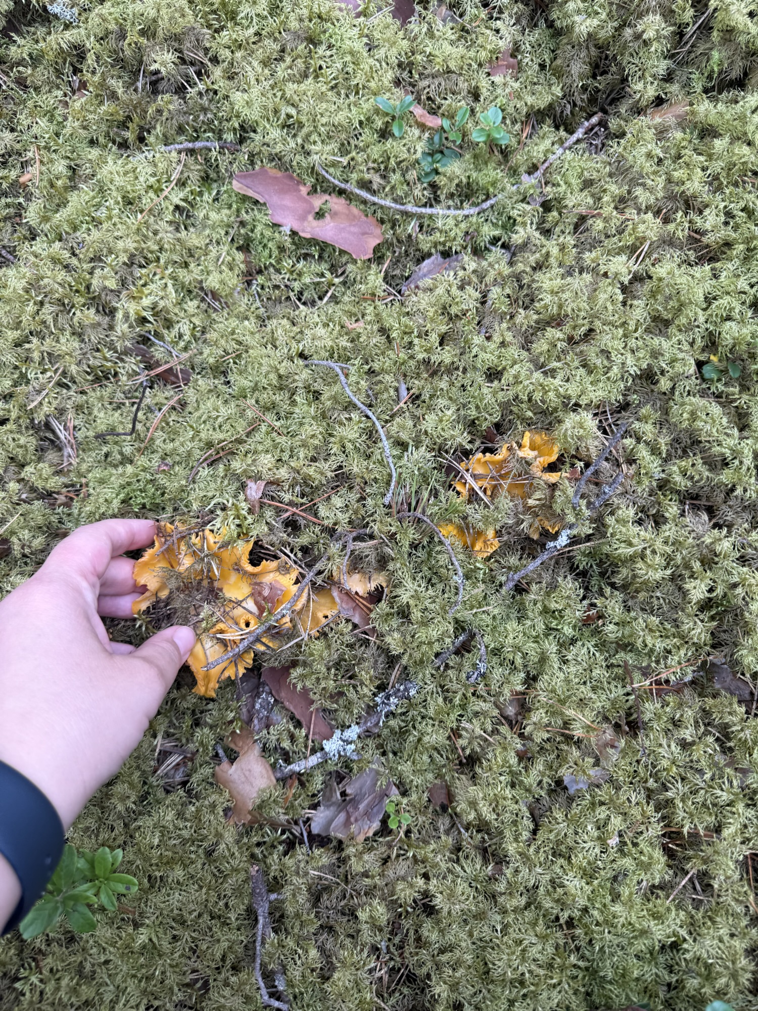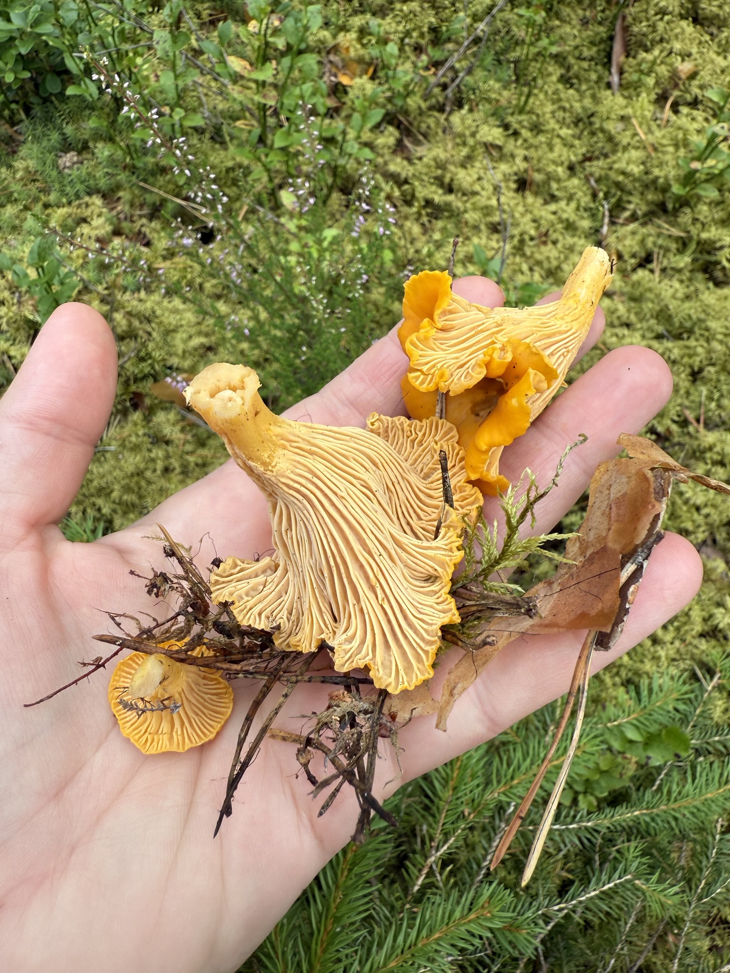 I was feeling a bit down yesterday, so I went to the forest. I foraged for chanterelles and russules, and ate a few bilberries — enough to turn my mouth completely blue.