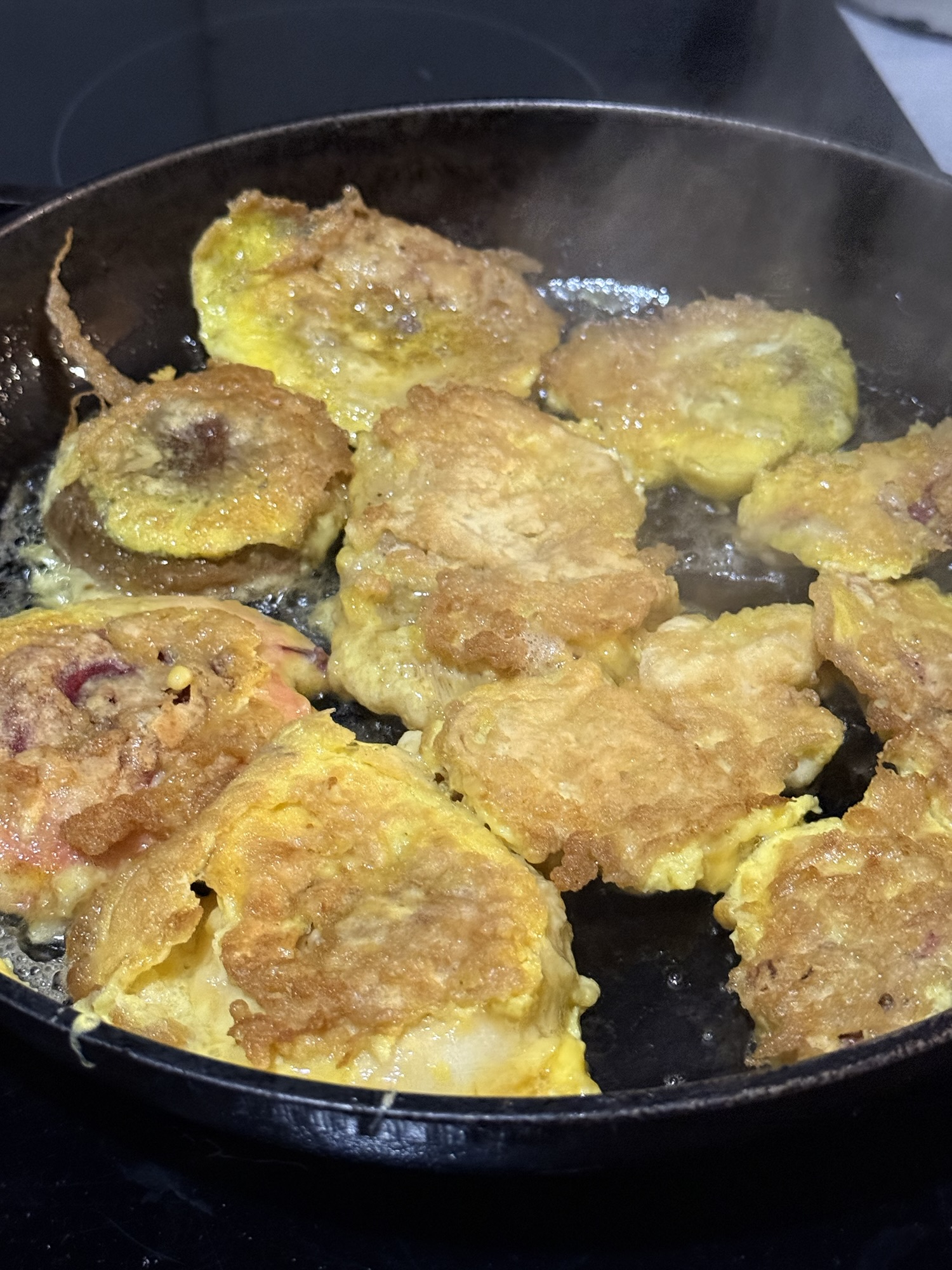 When I got home, I cooked dinner. I love making birch boletes into what we call sēņu karbonādes — mushroom patties. I ate them straight from the frying pan… only half of them made it to dinner. 😅 And of course, with the chanterelles I had planned to make risotto, but I ended up making potatoes with a creamy chanterelle sauce instead.