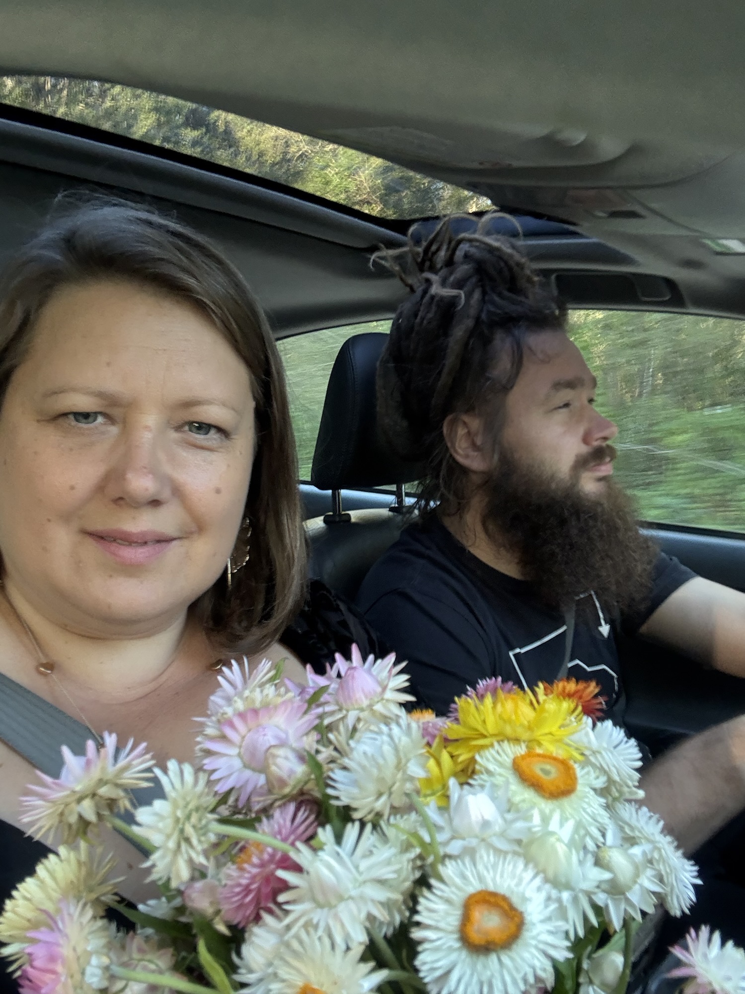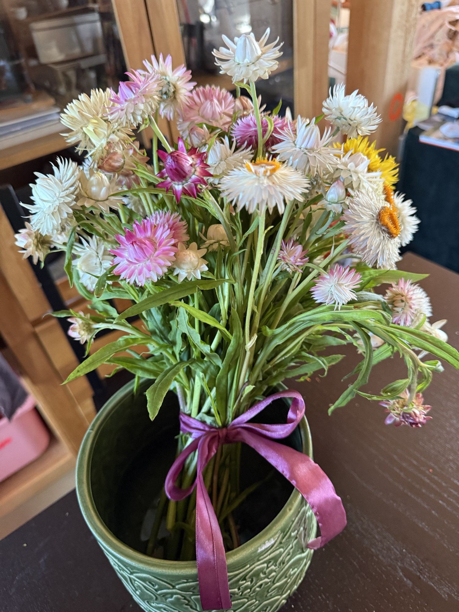 Before all that chaos, I picked my straw flowers — they look absolutely lovely right now. I even made a bouquet to bring along for the pictures.