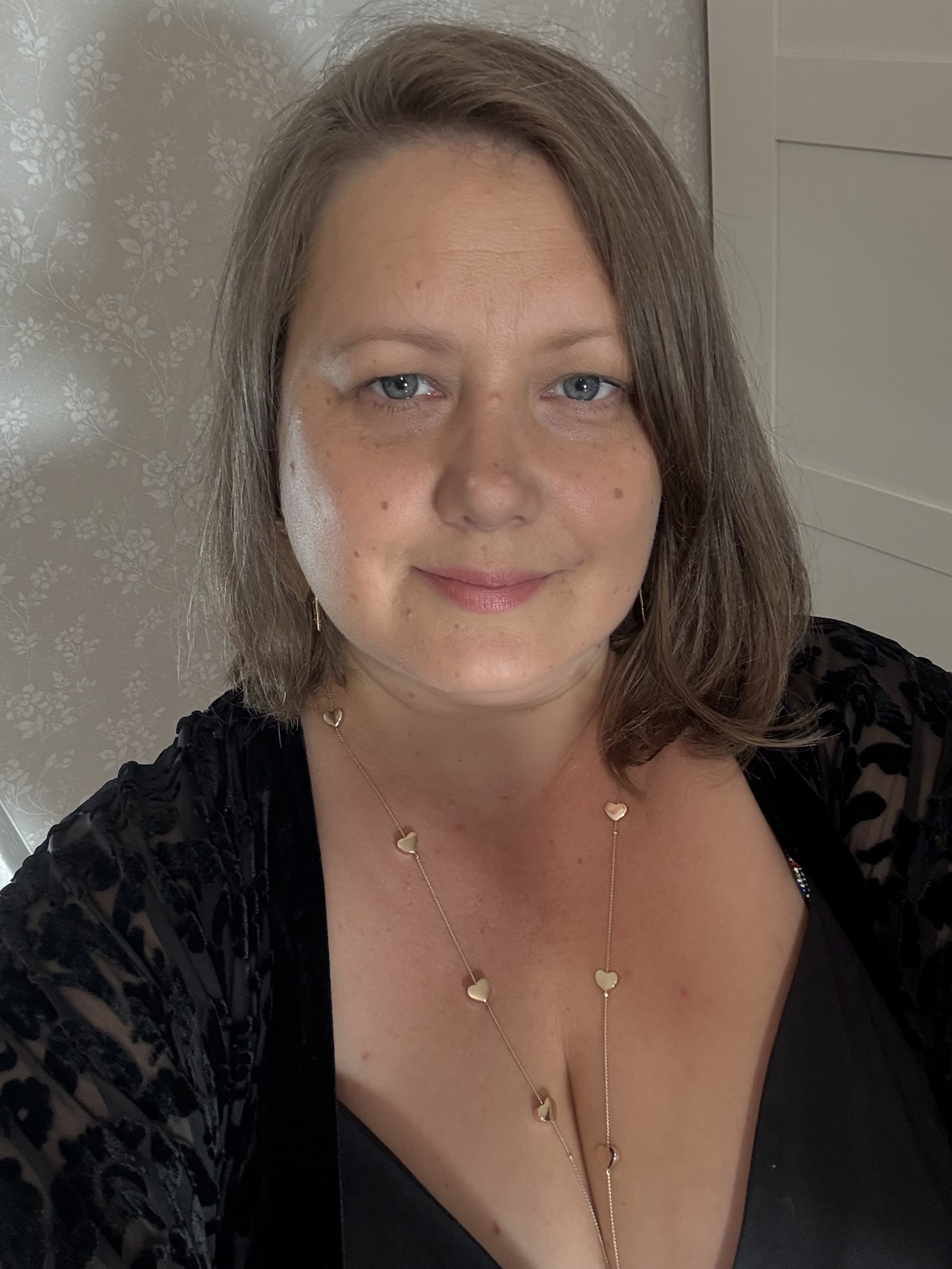 I decided to try a little makeup today—something I almost never do. I grabbed an old concealer, a dried-out mascara, some random SPF-30, and a lipstick from Nelle’s makeup bag. I even used the mascara on my eyebrows. By all logic, it should have looked awful… but somehow it turned out beautifully natural. I love it! And the best part? I did it all myself!