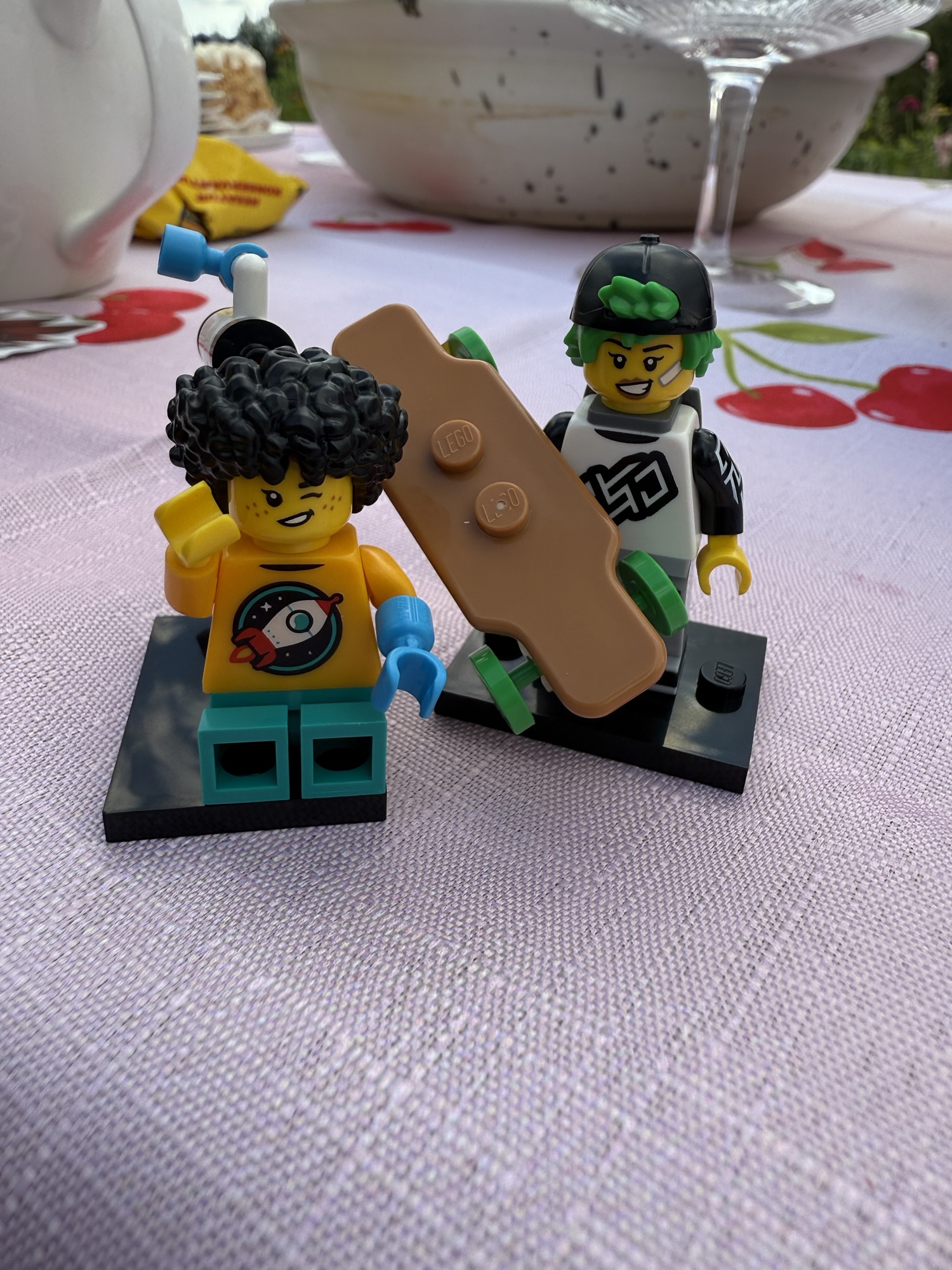 The kids set the table and, to our surprise, gifted each of us a LEGO minifigure set. It was so thoughtful and so us. I got astronaut and Jānis skater…