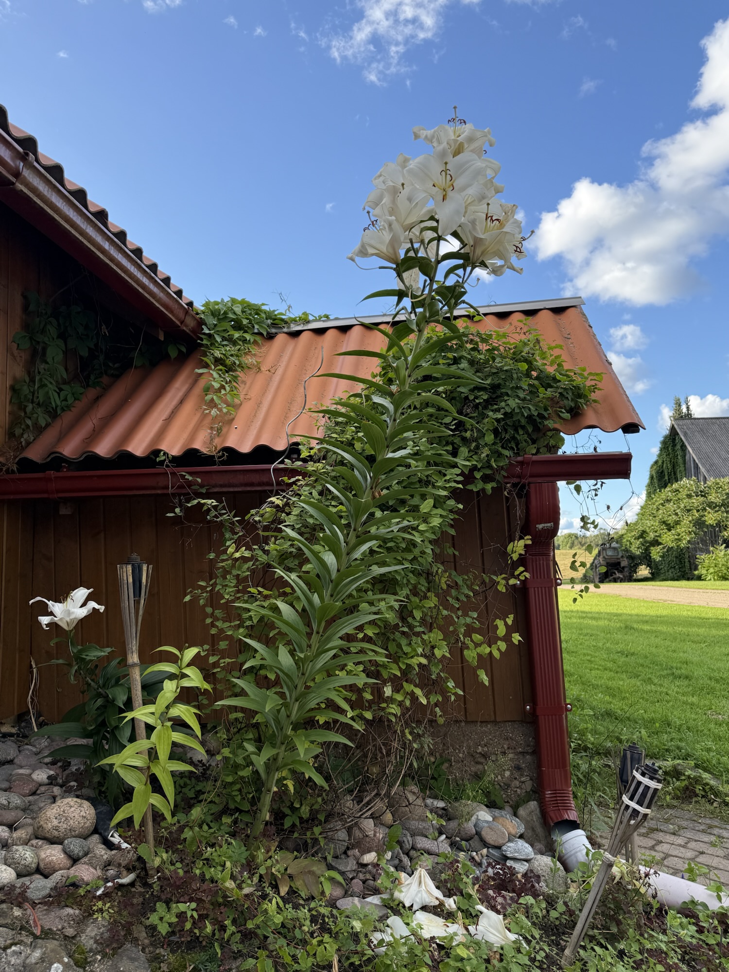 Thank you! That lily looks absolutely wild… way too tall! The previous ones (the bulbs) were eaten by muskrats or something similar. But this one I planted right by the cellar wall — concrete all around with about 50 cm of soil on top — so nothing could get to it. 😊 The only one that survived, and it gave us such a wonderful surprise!