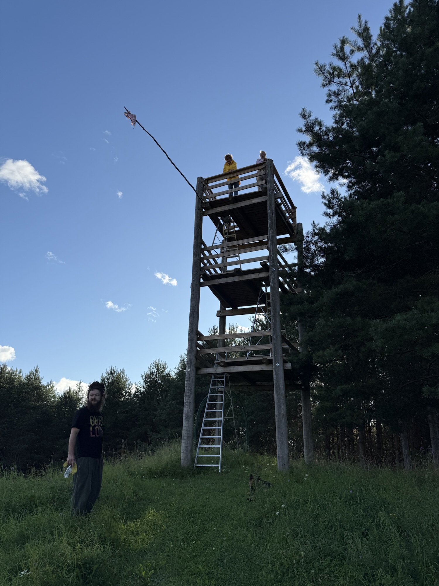 It felt so symbolic because our wedding had taken place right there — in Jānis’s parents’ countryside. Back then, the celebration was held in the barn, while the ceremony itself took place on top of the hill. Now, that same hill has a watchtower, built so people can climb up and enjoy the wide views of nature and watch birds.