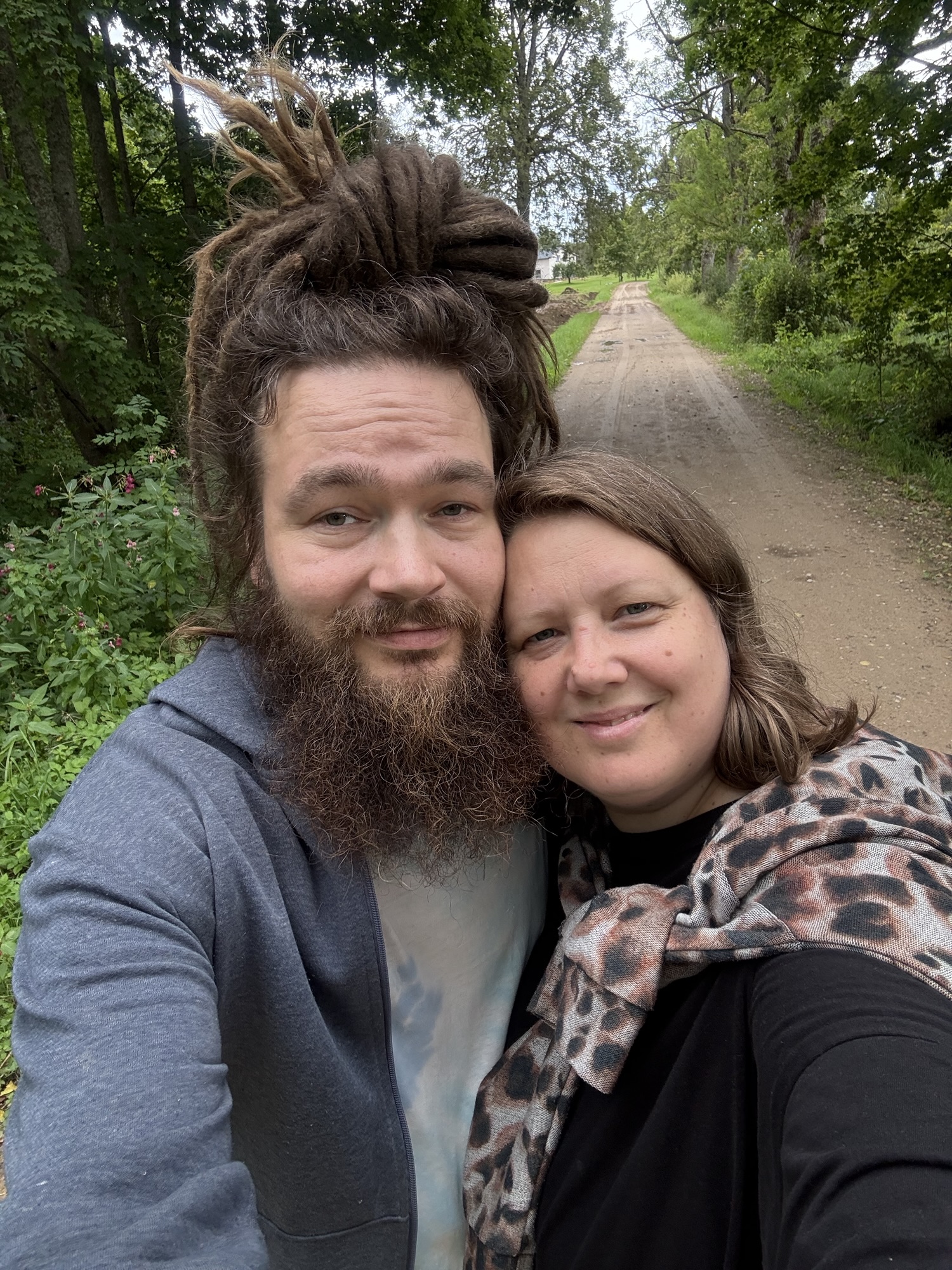 I went for a 5 km walk with Jānis. On the way, we spotted bees, a butterfly caterpillar, an overturned beetle, and even a little stream. Everything just feels more romantic when I’m walking with my husband. 🙂
