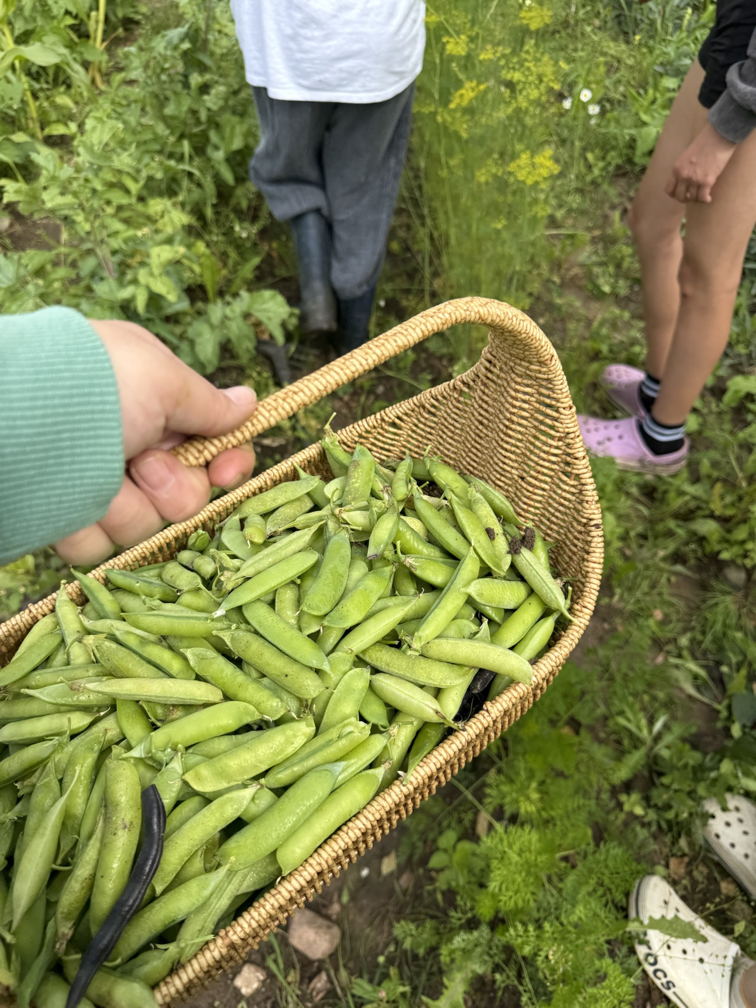 I went out to the garden just to check if we had enough yellow beans for lunch, and instead I came back with a full basket of sugar peas (and a bit of beans)! The kids ate quite a lot of them fresh, and I did too. Still, I’m thinking of cooking a stew with our own carrots, potatoes, and peas.