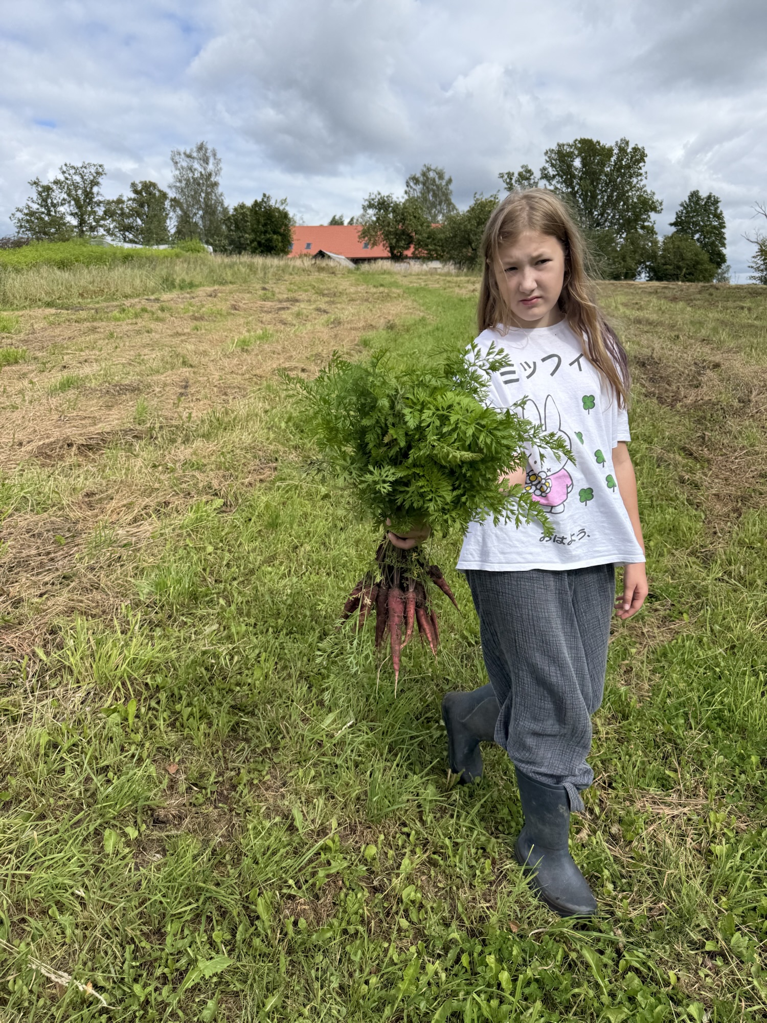 Linna also picked some carrots — they’re starting to get bigger now and perfect for crunching on fresh. 🙂