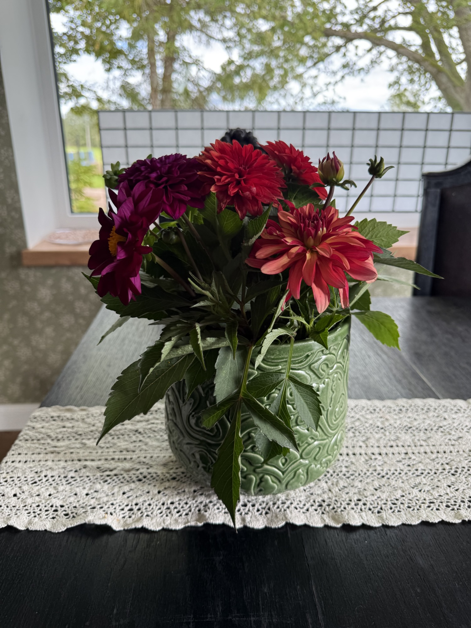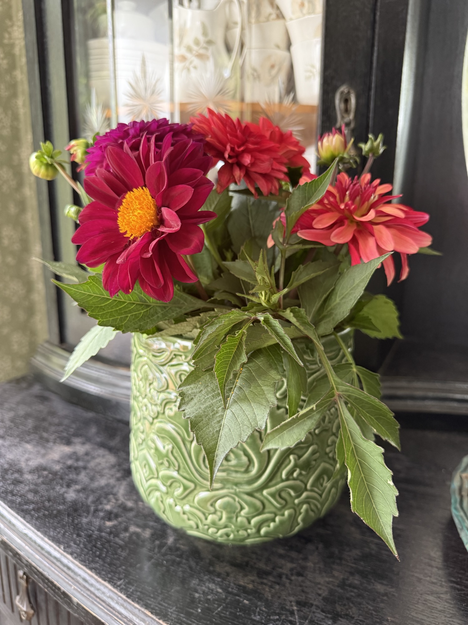 I was forgetting the beautiful bouquet of dahlias on my table from the celebration. Need to share!
