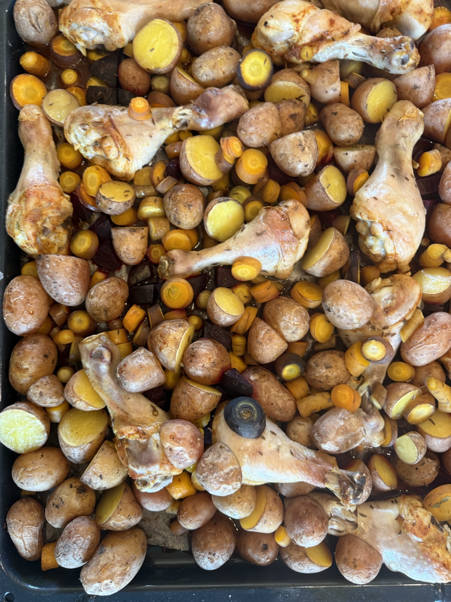 I went to the garden and collected a few new beetroots and carrots – regular ones and purple ones. We had potatoes together with chicken legs; they made a hearty dinner. It’s such a rainy and cold day outside… perfect for staying cozy inside with comfort food.