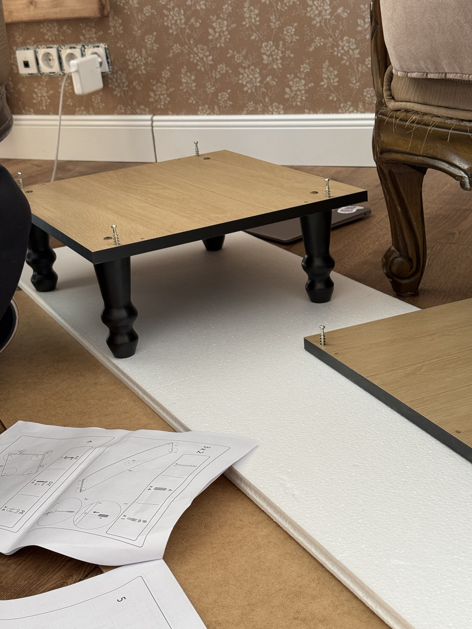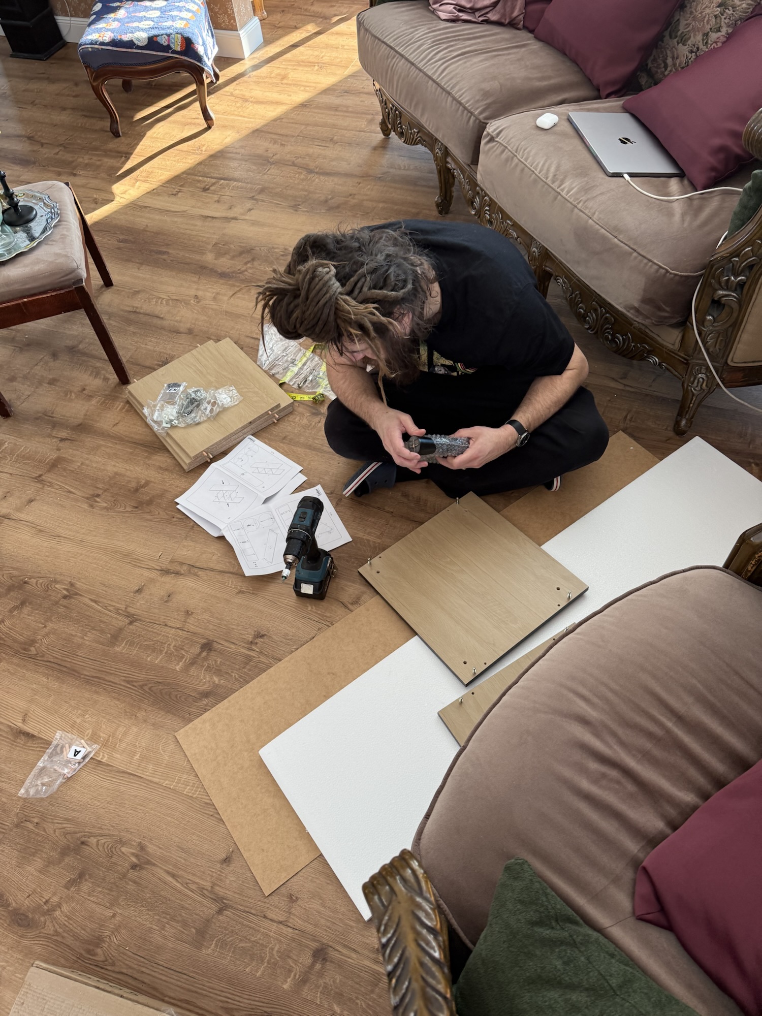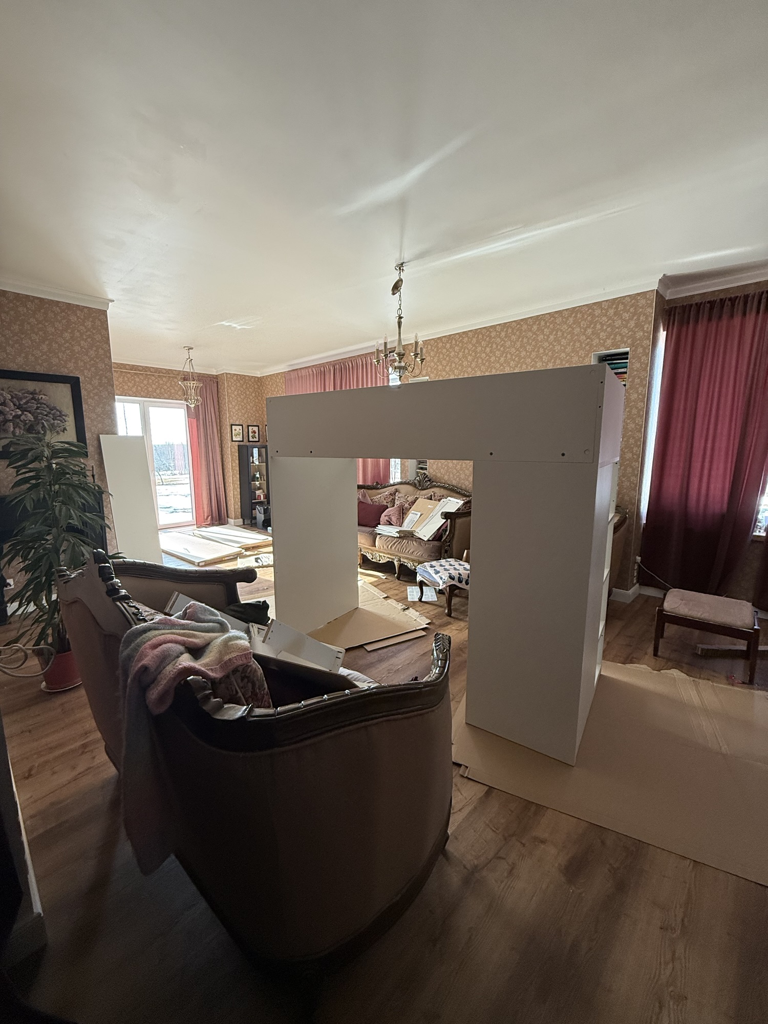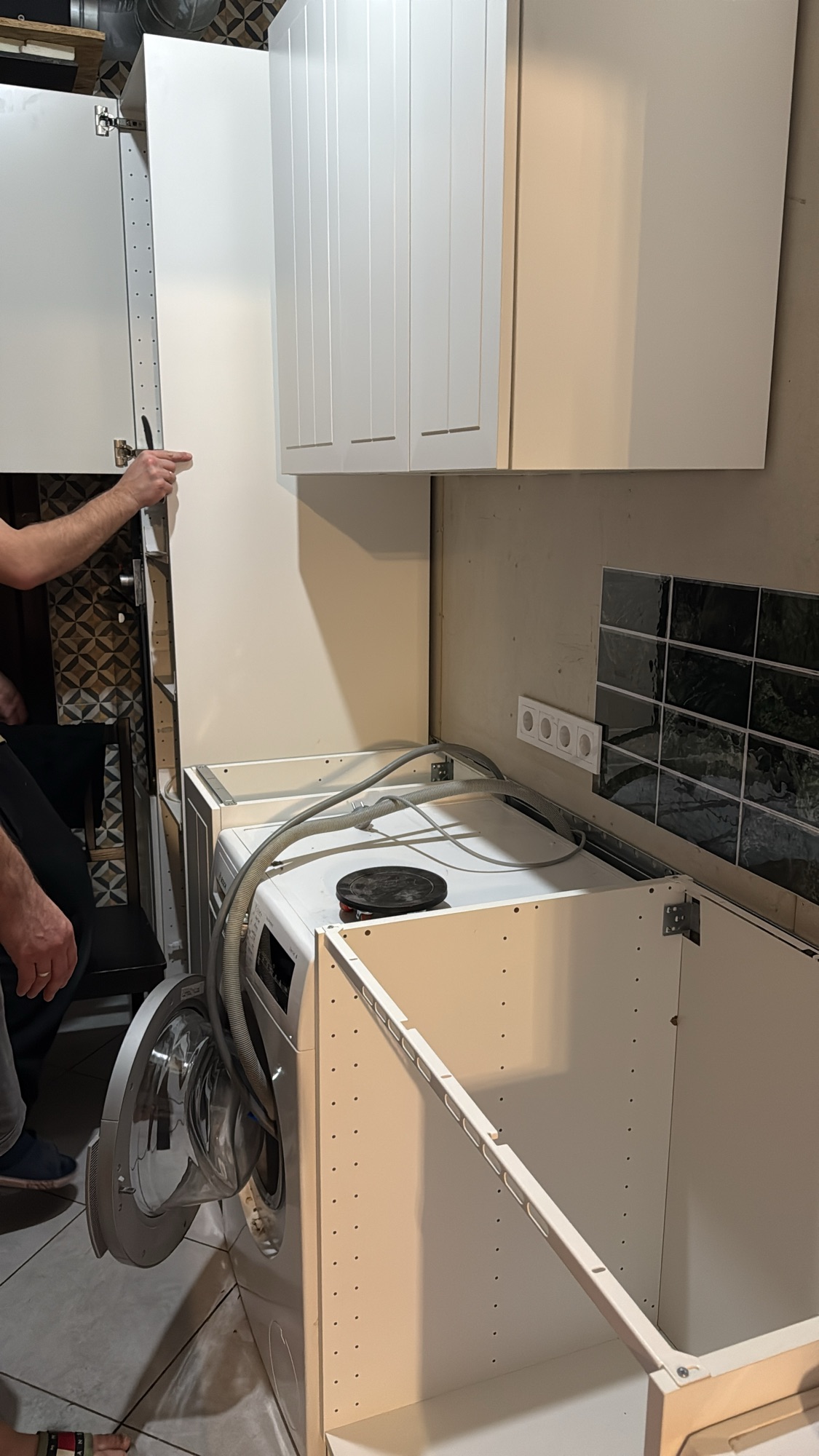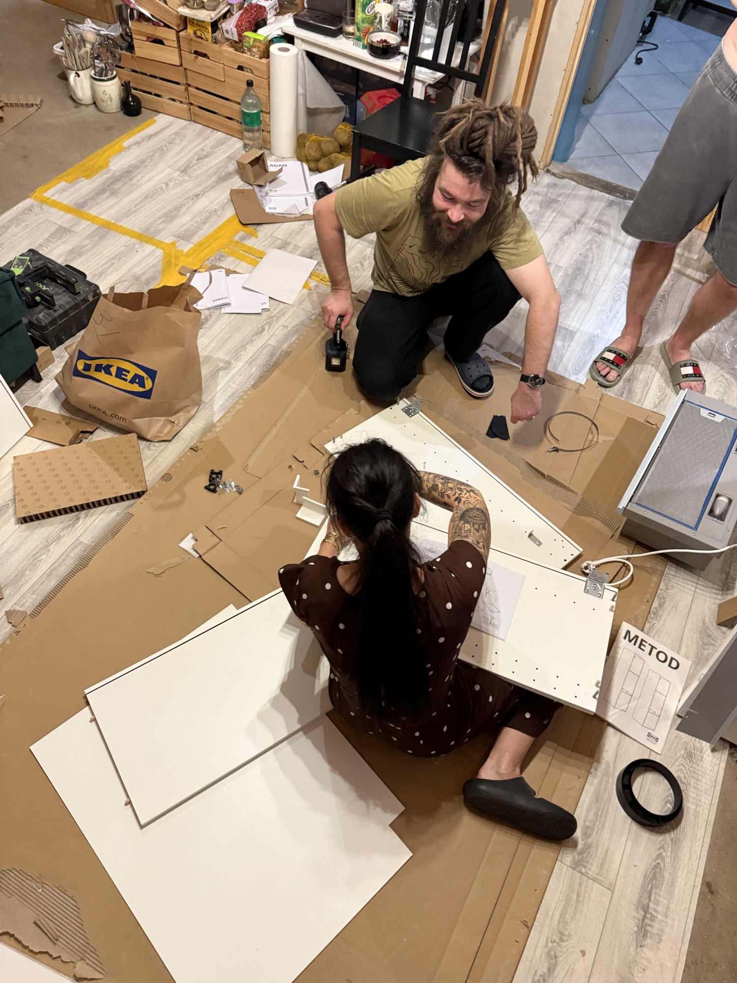 I liked it so much that we decided to buy a temporary kitchen as well… for Christmas. The boxes were delivered on Christmas Eve. My brother’s family and my mom came over, and we spent the evening chatting and screwing all the furniture together and installing it. We did it!