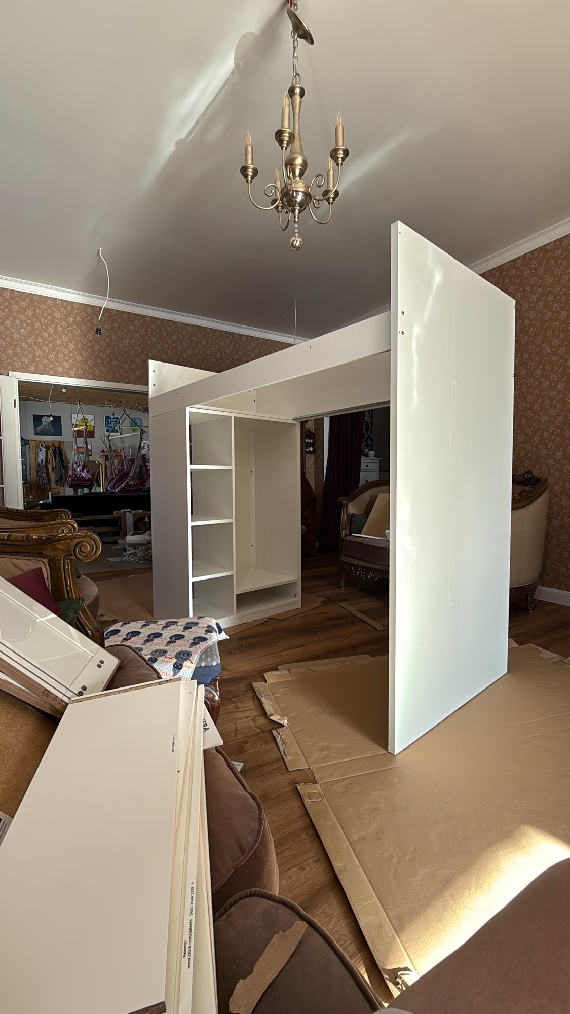 It won’t actually be a room with walls, but an enclosed space made from furniture—wardrobes, sideboards, and shelves.