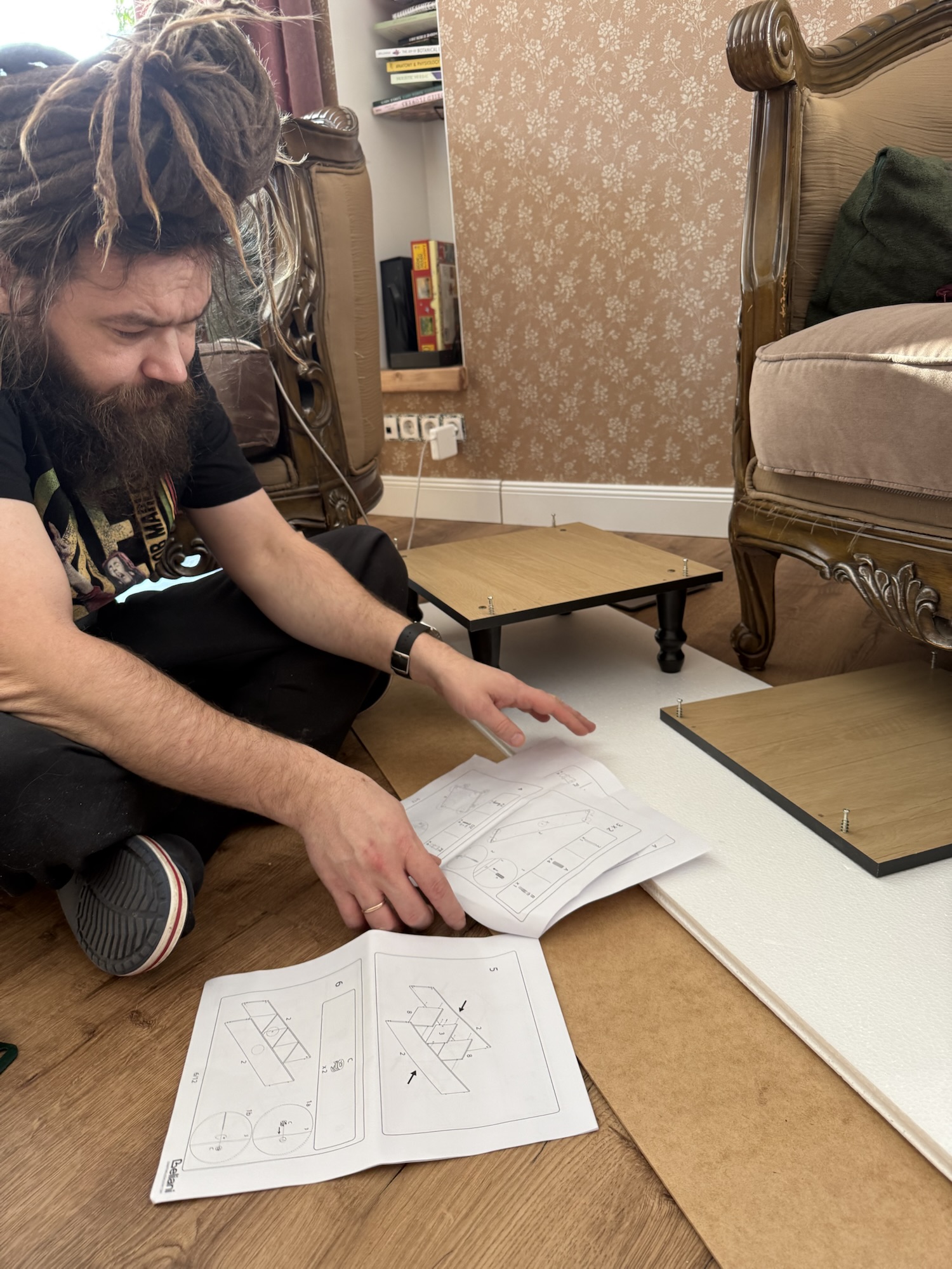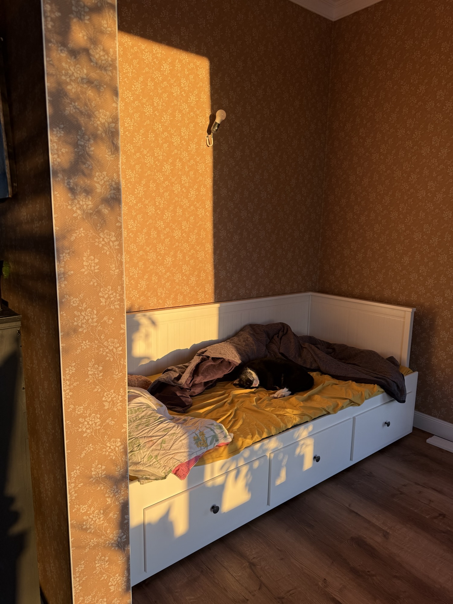 You guessed it: more IKEA. This time we’re building beds for Linna and Nelle. The space is temporary—downstairs—because we haven’t started building the upstairs yet. But we wanted to get rid of the old mattresses and half-broken beds anyway. I’ll upcycle the materials later, but right now we need to create a “separate room” for Nelle. Teenager life!
