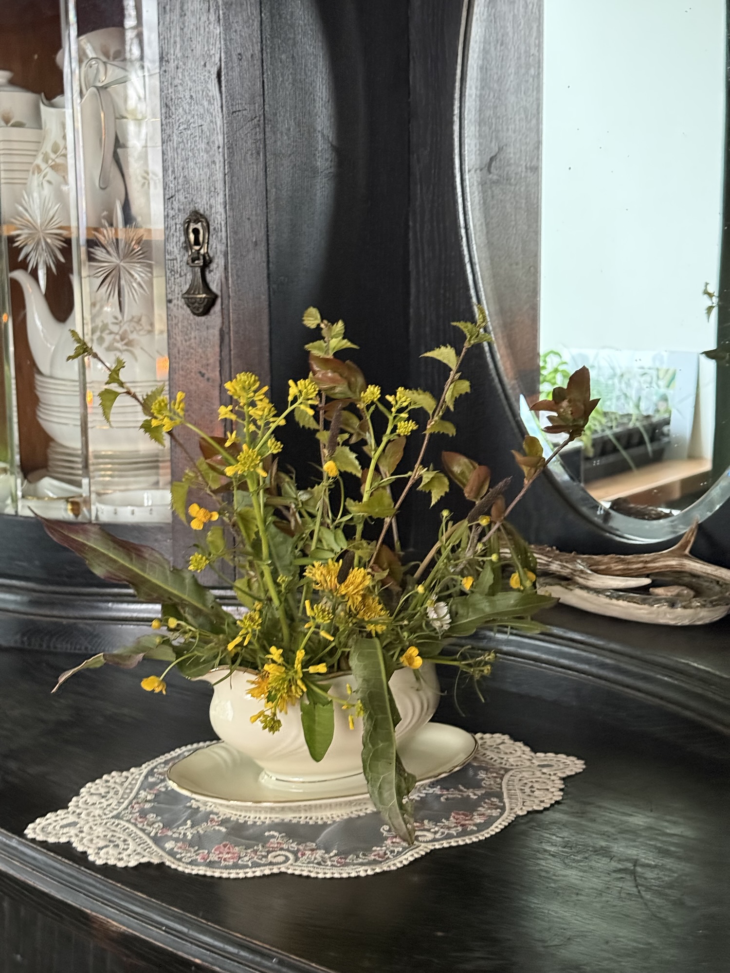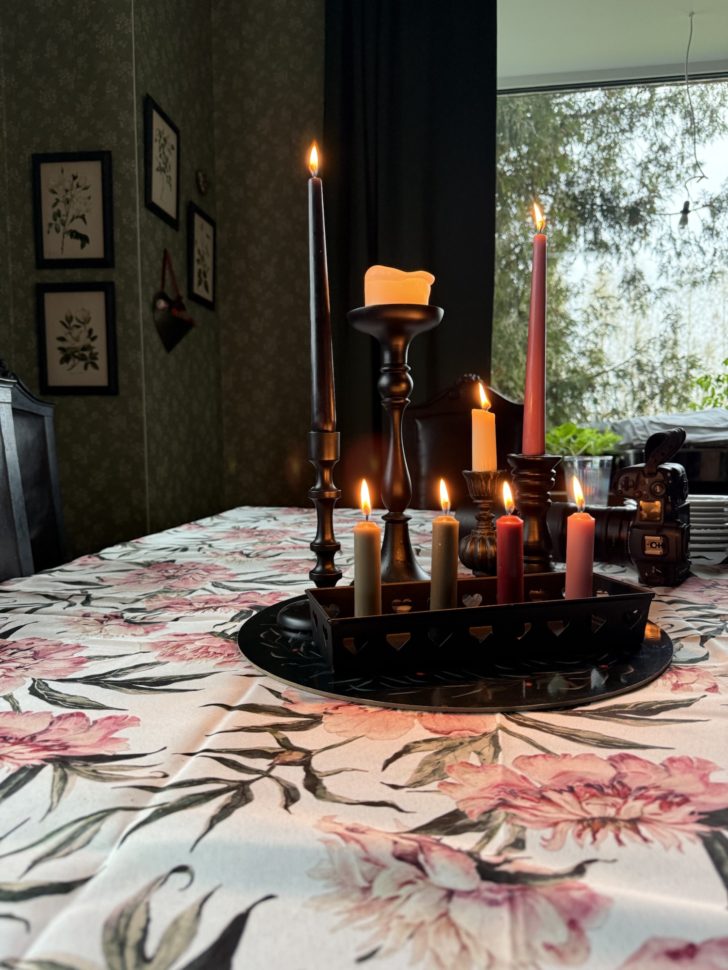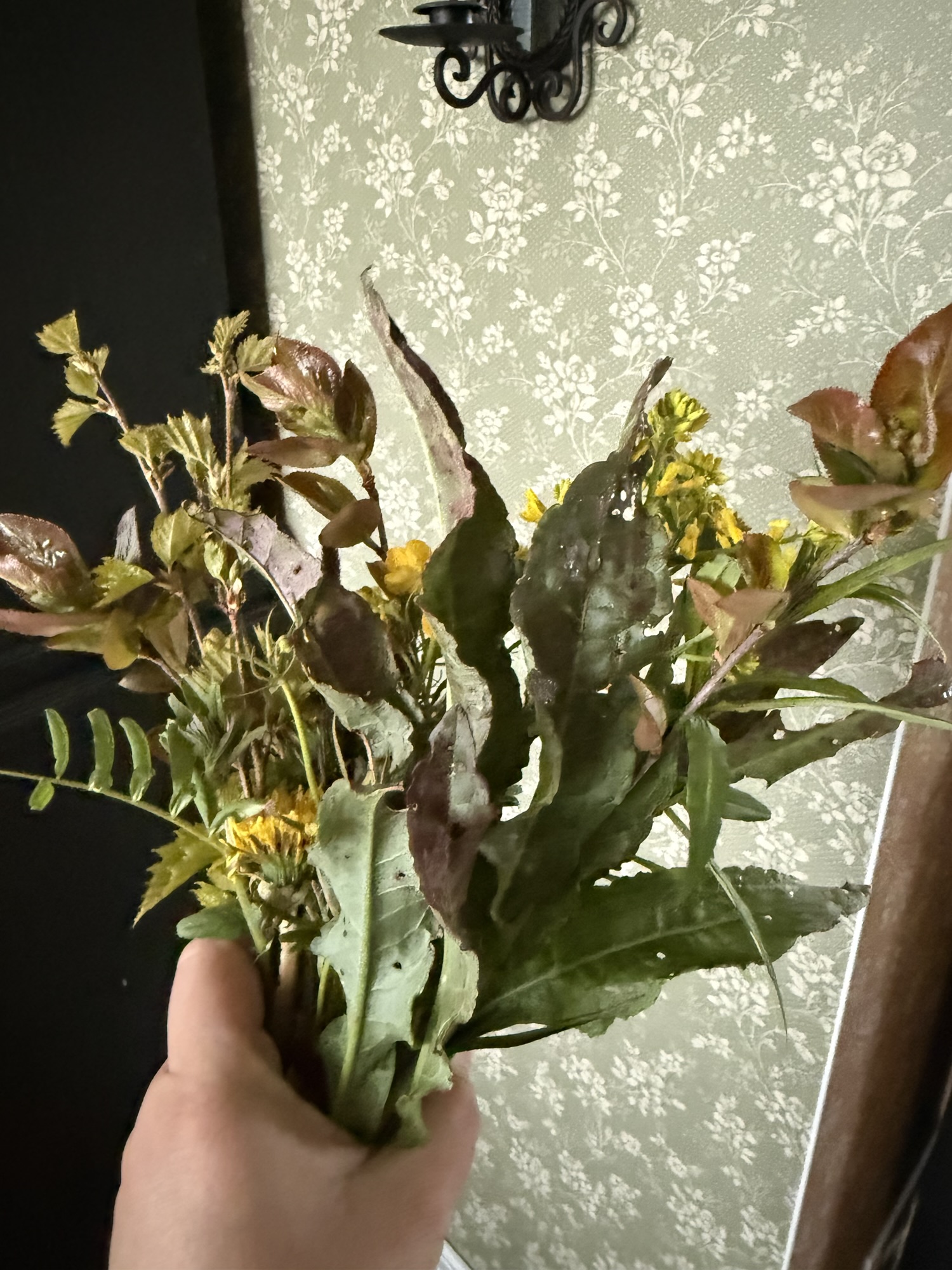 Brougth them inside. Lit candles, to set the mood. And started to make a composition from the plants (hard to call them flowers) I found outdoor. This is what I made! Not bad!