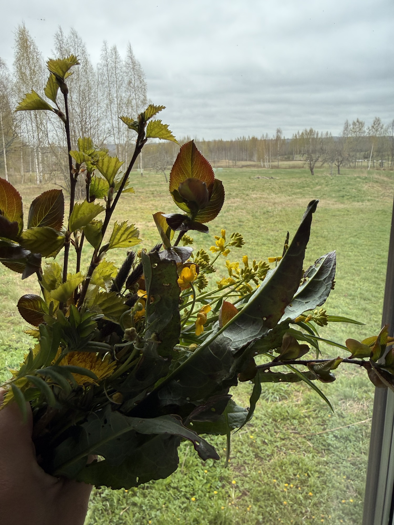 I walk through our fields (in the rain and cold) and tried to pick whatever I can find — small signs of life returning.
